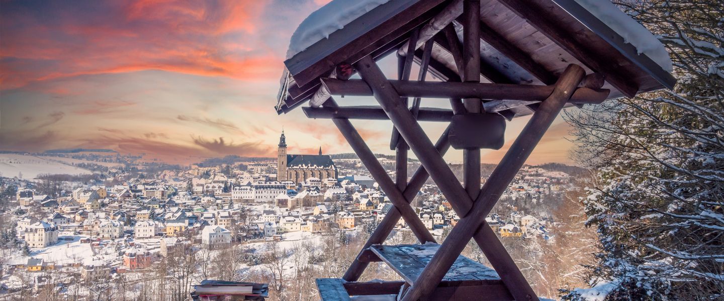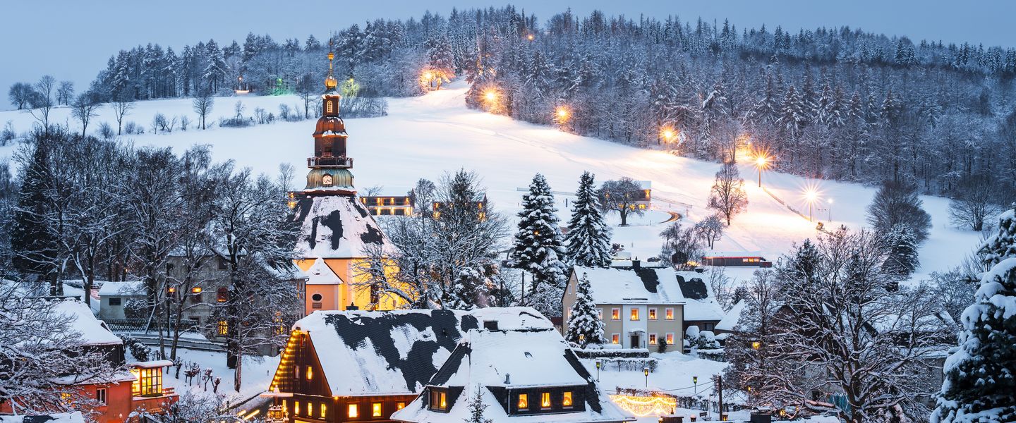 Die malerische Region Erzgebirge liegt im Grenzgebiet zwischen Deutschland und Tschechien. Das Erzgebirge ist bekannt für die Bergbaugeschichte und für traditionelle Handwerkskunst mit Holz und Glas. Die Kurstadt Karlovy Vary (Karlsbad) ist berühmt für die heißen Quellen, die Kolonnaden und beeindruckende Kurhäuser. Stimmen Sie sich in der romantischen Gegend auf die Adventszeit ein.