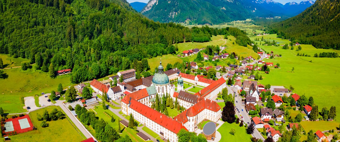 Die Benediktinerabtei Ettal liegt in der Gemeinde Ettal, im oberbayerischen Landkreis Garmisch-Partenkirchen. Geografisch befindet sich die Abtei in einer malerischen Umgebung, umgeben von den beeindruckenden Gipfeln der Alpen und idyllischen Wäldern. Die Anreise zur Abtei ist sowohl mit dem Auto als auch mit öffentlichen Verkehrsmitteln gut möglich, wobei die Region über eine gute Anbindung verfügt. In der Umgebung gibt es zahlreiche Möglichkeiten für weitere Aktivitäten, darunter Wanderungen in den umliegenden Bergen, Besuche der nahegelegenen Städte Garmisch-Partenkirchen und Oberammergau sowie Erkundungstouren zu den beeindruckenden Schlössern Neuschwanstein und Linderhof. Die zentrale Lage der Benediktinerabtei Ettal, kombiniert mit der Möglichkeit, die faszinierende Kultur und die Schönheit der bayerischen Alpen hautnah zu erleben, macht dieses Ziel zu einem unvergesslichen Erlebnis für alle, die diese beeindruckende Destination erkunden möchten.