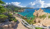 In Palau setzen Sie heute mit dem Bus per Fähre zur traumhaften Insel La Maddalena über. Dieser geschützte Archipel, der aus 23 Inseln und Inselchen besteht, erinnert an ein tropisches Paradies. Nach einem Bummel durch die stimmungsvolle Altstadt fahren Sie über einen Damm zur Nachbarinsel Caprera. Hier umgeben Sie der angenehme Duft von Zitronen, Oleander, Myrte und Rosmarin. Ihre Wanderung beginnt in der Nähe des Landgutes des Freiheitskämpfers Giuseppe Garibaldi und führt Sie auf einem breiten Sandweg bergauf zur Arbuticci-Festung. Der grandiose Blick von hier auf die Nachbarinsel Maddalena und Nordsardinien wird Sie begeistern! Auf schmalen Pfaden geht es hinab zur einsamen Bucht Cala Napoletana, die mit ihrem glasklaren Wasser zum Baden einlädt.