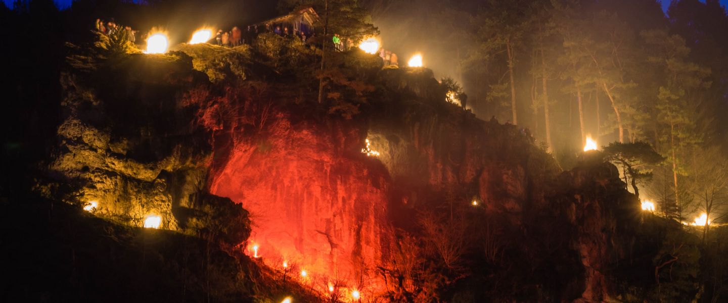 Jährlich am Dreikönigstag verwandelt sich Pottenstein in eine leuchtende Kulisse: Die traditionelle Ewigen Anbetung wird begleitet vom spektakulären Bergfeuer-Rundum. Tausende Besucherinnen und Besucher aus nah und fern strömen herbei, um sich vom sanften Flammenspiel der rund tausend Feuer auf den Felsen rund um Pottenstein verzaubern zu lassen. Das Lichtermeer schafft eine eindrucksvolle Atmosphäre und lädt zum Staunen, Innehalten und Gemeinschaftspüren ein.