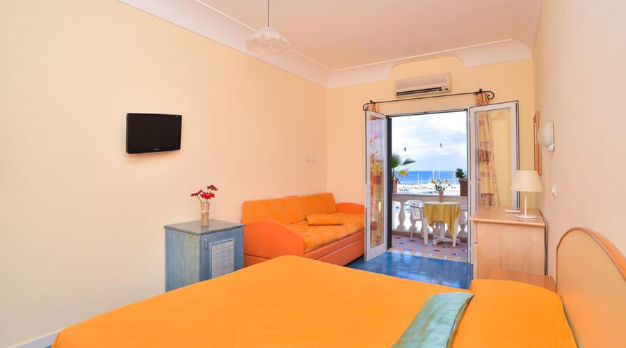 Zimmer: Die Zimmer sind einfach, aber komfortabel eingerichtet und bieten eine gemütliche Atmosphäre. Jedes Zimmer ist mit kostenfreiem WLAN, einem Flachbildfernseher, einem Schreibtisch und einem eigenen Bad ausgestattet. Die Zimmer sind in verschiedenen Kategorien verfügbar, darunter Einzelzimmer, Doppelzimmer und Familienzimmer, die für Paare und kleine Gruppen geeignet sind. Viele Zimmer bieten zudem einen Balkon oder eine Terrasse mit Blick auf die umliegende Landschaft oder das Meer.